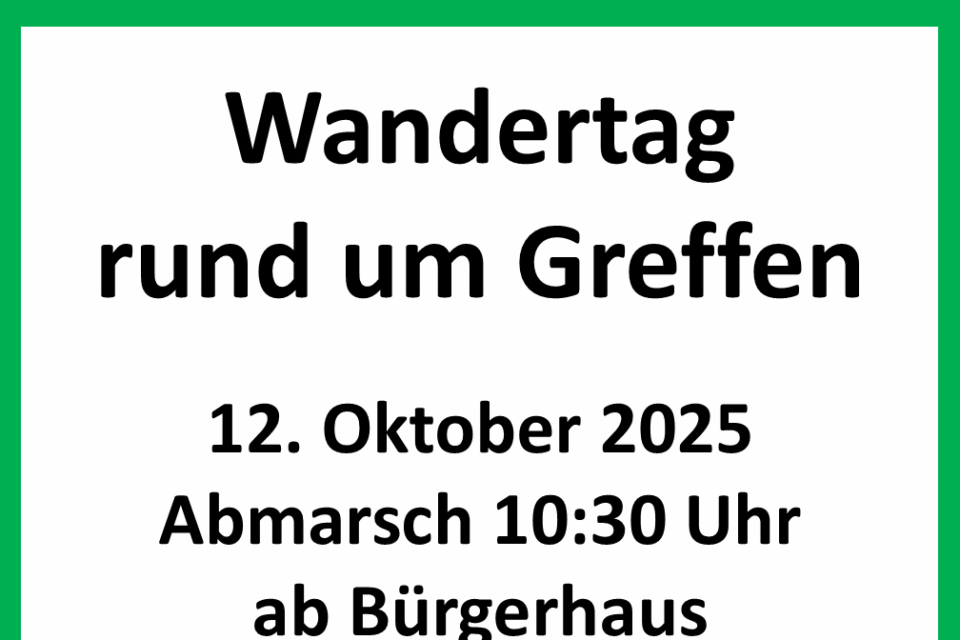 Wandertag 2025Termine, Veranstaltungen Am Sonntag, 12.10.25, um 10:30 Uhr startet am Bürgerhaus Greffen die diesjährige Wanderung durch und um Greffen. Für das leibliche Wohl ist gesorgt. Teilnahmegebühren:ab 15 Jahre 6,00 €5 – 14 Jahre 3,00 € 27. September 2025 Christian Rugge-Fechtelpeter Wandertag